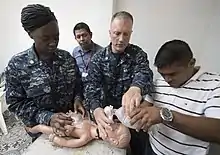 Treatment primarily consists of intrauterine resuscitation, the goal of which is to restore oxygenation of the fetus.[6] This can involve improving the position, hydration, and oxygenation of the mother, as well as amnioinfusion to restore sufficient amniotic fluid, delaying preterm labor contractions with tocolysis, and correction of fetal acid-base balance.[1] An algorithm is used to treat/resuscitate babies in need of respiratory support post-birth. [7]