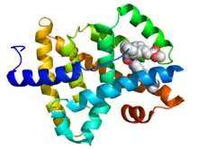 - PDB: 1OSH; Downes M, Verdecia MA, Roecker AJ, Hughes R, Hogenesch JB, Kast-Woelbern HR, Bowman ME, Ferrer JL, Anisfeld AM, Edwards PA, Rosenfeld JM, Alvarez JG, Noel JP, Nicolaou KC, Evans RM (April 2003). "A chemical, genetic, and structural analysis of the nuclear bile acid receptor FXR". Mol. Cell. 11 (4): 1079–92. doi:10.1016/S1097-2765(03)00104-7. PMID 12718892.