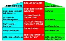 18. Adapted from: Pollak, Peter (2011). Fine Chemicals – The Industry and the Business (2nd. rev. ed.). Table 2.2: J. Wiley & Sons. pp. 1. ISBN 978-0-470-62767-9.{{cite book}}: CS1 maint: location (link)