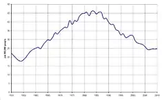 Suicide rate in Hungary (1950–2005), 1983: 45.3 suicides per 100,000 people, it was the second highest rate (after Lithuania, 1995: 45.6[1]) of an independent state in recorded human history. Higher rates were only measured in regions like Greenland or the Canadian territories.