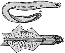 A smaller opening, the spiracle, lies in the back of the first gill slit. This bears a small pseudobranch that resembles a gill in structure, but only receives blood already oxygenated by the true gills.[7] The spiracle is thought to be homologous to the ear opening in higher vertebrates.[14]
