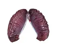Gills usually consist of thin filaments of tissue, branches, or slender tufted processes that have a highly folded surface to increase surface area. The high surface area is crucial to the gas exchange of aquatic organisms as water contains only a small fraction of the dissolved oxygen that air does. A cubic meter of air contains about 250 grams of oxygen at STP. The concentration of oxygen in water is lower than air and it diffuses more slowly. In a litre of freshwater the oxygen content is 8 cm3 per litre compared to 210 in the same volume of air.[8] Water is 777 times more dense than air and is 100 times more viscous.[8] Oxygen has a diffusion rate in air 10,000 times greater than in water.[8] The use of sac-like lungs to remove oxygen from water would not be efficient enough to sustain life.[8] Rather than using lungs "Gaseous exchange takes place across the surface of highly vascularised gills over which a one-way current of water is kept flowing by a specialised pumping mechanism. The density of the water prevents the gills from collapsing and lying on top of each other, which is what happens when a fish is taken out of water."[8]