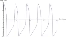 It is an example of a relaxation oscillator because, if the external stimulus exceeds a certain threshold value, the system will exhibit a characteristic excursion in phase space, before the variables and relax back to their rest values.