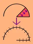 • Local flaps are created by freeing a layer of tissue and then stretching the freed layer to fill a defect. This is the least complex type of flap and includes advancement flaps, rotation flaps, and transposition flaps, in order from least to most complex. With an advancement flap, incisions are extended out parallel from the wound, creating a rectangle with one edge remaining intact. This rectangle is freed from the deeper tissues and then stretched (or advanced) forward to cover the wound. The flap is disconnected from the body except for the uncut edge which contains the blood supply which feeds in horizontally. A rotation flap is similar except instead of being stretched in a straight line, the flap is stretched in an arc. The more complex transposition flap involves rotating an adjacent piece of tissue, resulting in the creation of a new defect that must then be closed.[5]