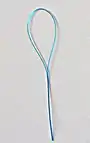 A floss threader is loop of fiber that is shaped in order to produce better handling characteristics. It is (similar to fishing line) used to thread floss into small, hard to reach sites around teeth.[37] Threaders are sometimes required to floss with dental braces, fix retainers, and bridge.