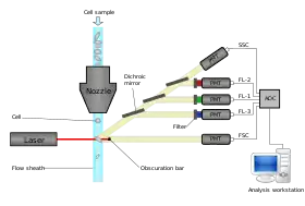 Flow cytometry (FC) is a technique used to detect and measure physical and chemical characteristics of a population of cells or particles.[1][2][3][4]