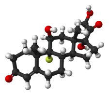 Fludrocortisone, also known as 9α-fluorocortisol (9α-fluorohydrocortisone) or as 9α-fluoro-11β,17α,21-trihydroxypregn-4-ene-3,20-dione, is a synthetic pregnane steroid and a halogenated derivative of cortisol (11β,17α,21-trihydroxypregn-4-ene-3,20-dione).[1][2] Specifically, it is a modification of cortisol with a fluorine atom substituted in place of one hydrogen atom at the C9α position.[1][2] Fluorine is a good bioisostere for hydrogen because it is similar in size, with the major difference being in its electronegativity. The acetate form of fludrocortisone, fludrocortisone acetate, is the C21 acetate ester of fludrocortisone,[1][2] and is hydrolyzed into fludrocortisone in the body.[12]