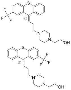Flupentixol (INN), also known as flupenthixol (former BAN), marketed under brand names such as Depixol and Fluanxol is a typical antipsychotic drug of the thioxanthene class. It was introduced in 1965 by Lundbeck. In addition to single drug preparations, it is also available as flupentixol/melitracen—a combination product containing both melitracen (a tricyclic antidepressant) and flupentixol (marketed as Deanxit). Flupentixol is not approved for use in the United States. It is, however, approved for use in the UK,[4] Australia,[5] Canada, Russian Federation,[6] South Africa, New Zealand, Philippines, Iran, Germany, and various other countries.