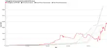 On September 16, 2007, due in large part to the participation of PlayStation 3 consoles, the Folding@home project officially attained a sustained performance level higher than one native petaFLOPS, becoming the first computing system of any kind to do so.[126][127] Top500's fastest supercomputer at the time was BlueGene/L, at 0.280 petaFLOPS.[128] The following year, on May 7, 2008, the project attained a sustained performance level higher than two native petaFLOPS,[129] followed by the three and four native petaFLOPS milestones in August 2008[130][131] and September 28, 2008 respectively.[132] On February 18, 2009, Folding@home achieved five native petaFLOPS,[133][134] and was the first computing project to meet these five levels.[135][136] In comparison, November 2008's fastest supercomputer was IBM's Roadrunner at 1.105 petaFLOPS.[137] On November 10, 2011, Folding@home's performance exceeded six native petaFLOPS with the equivalent of nearly eight x86 petaFLOPS.[127][138] In mid-May 2013, Folding@home attained over seven native petaFLOPS, with the equivalent of 14.87 x86 petaFLOPS. It then reached eight native petaFLOPS on June 21, followed by nine on September 9 of that year, with 17.9 x86 petaFLOPS.[139] On May 11, 2016 Folding@home announced that it was moving towards reaching the 100 x86 petaFLOPS mark.[140]