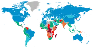 At the global level, the prevalence of food insecurity at a moderate or severe level, and severe level only, is higher among women than men, magnified in rural areas.[34] The gender gap in accessing food increased from 2018 to 2019, particularly at moderate or severe levels.[35][34] Today, more than one billion women and girls around the world still do not have access to the healthy diets they need to survive and thrive,[36] and two-thirds of countries report higher rates of food insecurity for women than men,[37] especially in the Near East area.[34]