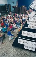 Several books have claimed that food and agricultural associations exert undue political power on the USDA.[29][30] Food industries, such as milk companies, have been accused of influencing the United States Department of Agriculture into making the colored spots on the newly created food pyramid larger for their particular product. The milk section has been claimed to be the easiest to see out of the six sections of the pyramid, making individuals believe that more milk should be consumed on a daily basis compared to the others.[31] Furthermore, the inclusion of milk as a group unto itself implies that is an essential part of a healthy diet, despite the many people who are lactose intolerant or choose to abstain from dairy, and a number of cultures that have historically consumed little if any dairy products. Joel Fuhrman says in his book Eat to Live that U.S. taxpayers must contribute $20 billion on price supports to artificially reduce the price of cattle feed to benefit the dairy, beef and veal industries, and then pay the medical bills for an overweight population.[32] He asks if the USDA is under the influence of the food industry, because a food pyramid based on science would have vegetables at its foundation.[32]