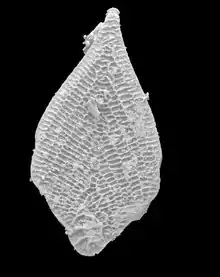 Antonie van Leeuwenhoek described and illustrated foraminiferal tests in 1700, describing them as minute cockles; his illustration is recognizable as being Elphidium.[17] Early workers classified foraminifera within the genus Nautilus, noting their similarity to certain cephalopods. It was recognised by Lorenz Spengler in 1781 that foraminifera had holes in the septa, which would eventually grant the group its name.[18] Spengler also noted that the septa of foraminifera arced the opposite way from those of nautili and that they lacked a nerve tube.[19]