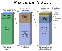 A graphical distribution of the locations of water on Earth.[lower-alpha 2]