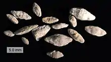 The fusulinids are among the earliest calcareous-walled foraminifera; they appear in the fossil record during the Llandoverian epoch of the early Silurian. The earliest of these were microscopic, planispirally coiled, and evolute; later forms evolved a diversity of shapes including lenticular, globular, and elongated rice-shaped forms.[3][4]