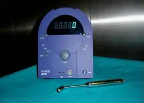 A gamma probe is a handheld device containing a scintillation counter, for intraoperative use following injection of a radionuclide, to locate sentinel lymph nodes by their radioactivity.[1] It is used primarily for sentinel lymph node mapping and parathyroid surgery. Gamma probes are also used for RSL (radioactive seed localization), to locate small and non-palpable breast lesions.[2][3]: 243