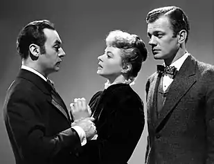 The term alludes to the 1944 American film Gaslight,[5][6][7] a remake of the 1940 British film of the same name, which in turn is based on the 1938 thriller play Gas Light. Set among London's elite during the Victorian era, it portrays a seemingly genteel husband using lies and manipulation to isolate his heiress wife and persuade her that she is mentally unwell so that he can steal from her.[8] In the story the husband secretly dims and brightens the indoor gas-powered lighting but insists his wife is imagining it, making her think she is going insane.[9] The term "gaslighting" itself is neither in the screenplay nor mentioned in either the films or the play in any context.