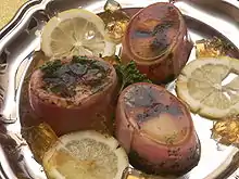 The 10th-century Kitab al-Tabikh includes a recipe for a fish aspic, made by boiling fish heads.[39]