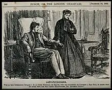 Women's overall health has long been associated with their reproductive abilities; further compounded by traditional views of sex, female gender roles, and femininity. Emotional and mental health were correlated with reproductive functions; menstruation, fertility, labour; as well as societal expectations such as desire for children, motherhood, subservience, and femininity. More specifically, if a woman did not meet the expectations of reproductive functions (such as inconsistent menstruation cycles, inability to conceive or carry to term, as well as display negative reactions such as nausea, pain), it was assumed that she held resentment or non-desire to bear and raise children, as well as being defiant of her feminine nature and role.[11] Conversely, if a woman were not to behave in alignment with femininity and gender role expectations, unable to maintain and care for family and housework, insubordinate, sick or in pain; then it were to mean they were mentally ill or disturbed, often diagnosed with hysteria.[12] In 1948 some women volunteered to take part in an experiment designed to quantify pain in laboring women. During their labor, their hands were burned in order to try to measure their pain threshold with the option to quit at any time and to receive treatment. During childbirth and as it kept progressing, the females were unable to feel an increase in pain insomuch as many of them received second degree burns without realizing.[13]