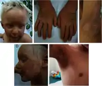 Genodermatosis is a hereditary skin disease with three inherited modes including single gene inheritance, multiple gene inheritance and chromosome inheritance.[1] There are many different types of genodermatosis, the prevalence of genodermatosis ranges from 1 per 6000 people to 1 per 500,000 people.[2] Genodermatosis has influence on the texture, color and structure of skin cuticle and connective tissue, specific lesion site and clinical manifestations on the body vary depending on the type.[3] In the spite of the variety and complexity of genodermatosis, there are still some common methods that can help people diagnose.[4] After diagnosis, different types of genodermatosis require different levels of therapy including interventions, nursing interventions and treatments.[5] Among that, research of therapy for some new, complex and rare types are still in the developing stage.[6] The impact of genodermatosis not only can be seen in body but also can be seen in all aspects of patients' life, including but not limited to psychological, family life, economic conditions and social activities.[5][7] Accordingly, the patients need treatment, support and help in these areas.[5]