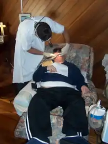 ![]() An elderly woman in a residential care home receiving dental treatment | |