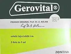 Gerovital is promoted with unsupported claims of its curative abilities for a wide range of human ailments; research has found no evidence that it has any health benefit or "anti-aging" properties.[1]