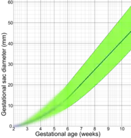 The mean sac diameter[3] can effectively estimate the gestational age[4] between 5 and 6 weeks, with an accuracy of about +/- 5 days.[5]