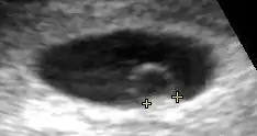 ![]() Contents in the cavity of the uterus seen at approximately 5 weeks of gestational age by obstetric ultrasonography. | |