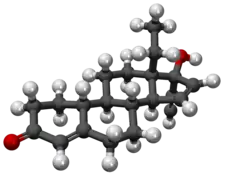 Gestodene has relatively high affinity for the androgen receptor (AR), with twice that of levonorgestrel (which is known to be one of the more androgenic 19-nortestosterone derivatives).[25] However, the ratio of progestogenic to androgenic effects of gestodene is distinctly higher than that of levonorgestrel, and the increase in sex hormone-binding globulin (SHBG) levels (a marker of androgenicity) produced by oral contraceptives containing gestodene is slightly less than that produced by oral contraceptives containing desogestrel (which is known to be one of the more weakly androgenic 19-nortestosterone derivatives).[25] In addition, no difference in acne incidence has been observed with oral contraceptives containing gestodene and oral contraceptives containing desogestrel.[26] Gestodene may also act to some extent as a 5α-reductase inhibitor.[9][25] Taken together, like desogestrel, gestodene appears to have a low potential for androgenic effects.[25]