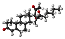 Gestonorone caproate, also known as norhydroxyprogesterone caproate, 17α-hydroxy-19-norprogesterone 17α-hexanoate, or 17α-hydroxy-19-norpregn-4-ene-3,20-dione 17α-hexanoate, is a synthetic norpregnane steroid and a derivative of progesterone.[64][16] It is specifically a combined derivative of 17α-hydroxyprogesterone and 19-norprogesterone, or of gestronol (17α-hydroxy-19-norprogesterone), with a hexanoate (caproate) ester at the C17α position.[64][16] Analogues and derivatives of gestonorone caproate include algestone acetophenide (dihydroxyprogesterone acetophenide), demegestone, nomegestrol acetate, norgestomet, and segesterone acetate, as well as 18-methylsegesterone acetate and the caproate esters chlormadinone caproate, hydroxyprogesterone caproate, medroxyprogesterone caproate, megestrol caproate, and methenmadinone caproate.[64][16]