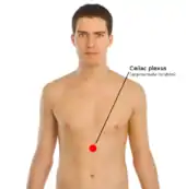 Getting the wind knocked out of you is an idiom that refers to the difficulty of breathing and temporary paralysis of the diaphragm caused by reflex diaphragmatic spasm when sudden force is applied to the upper central region of the abdomen and solar plexus.[1][2][3] This often happens in contact sports, from a forceful blow to the abdomen, or by falling on the back.