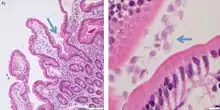 Natural barriers defend against parasite entering the host's body. Natural barriers consist of mucus layers, bile salt, proteases, and lipases. Additionally, peristalsis and the renewal of enterocytes provide further protection against parasites.[25][26]