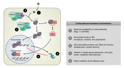 27. Leung DY, Bloom JW (Jan 2003). "Update on glucocorticoid action and resistance". The Journal of Allergy and Clinical Immunology. 111 (1): 3–22, quiz 23. doi:10.1067/mai.2003.97. PMID 12532089.