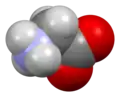listen))[7] is an amino acid that has a single hydrogen atom as its side chain. It is the simplest stable amino acid (carbamic acid is unstable), with the chemical formula NH2‐CH2‐COOH. Glycine is one of the proteinogenic amino acids. It is encoded by all the codons starting with GG (GGU, GGC, GGA, GGG). Glycine is integral to the formation of alpha-helices in secondary protein structure due to its compact form. For the same reason, it is the most abundant amino acid in collagen triple-helices. Glycine is also an inhibitory neurotransmitter – interference with its release within the spinal cord (such as during a Clostridium tetani infection) can cause spastic paralysis due to uninhibited muscle contraction.