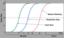 The golden hour is the period of time immediately after a traumatic injury during which there is the highest likelihood that prompt medical and surgical treatment will prevent death.[1][2] While initially defined as an hour, the exact time period depends on the nature of the injury and can be more than or less than this duration.[2] It is well established that the person's chances of survival are greatest if they receive care within a short period of time after a severe injury; however, there is no evidence to suggest that survival rates drop off after 60 minutes. Some have come to use the term to refer to the core principle of rapid intervention in trauma cases, rather than the narrow meaning of a critical one-hour time period.