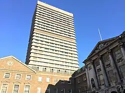 The hospital's Tower Wing (originally known as Guy's Tower) was, when built in 1974, the tallest hospital building in the world, standing at 148.65 metres (487.7 ft) with 34 floors. The tower was overtaken as the world's tallest healthcare-related building by The Belaire in New York City in 1988. As of June 2019, the Tower Wing, which remains one of the tallest buildings in London, is the world's fifth-tallest hospital building.[2]