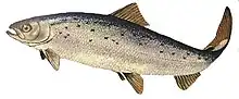 Gyrodactylus salaris, commonly known as salmon fluke,[1] salmon killer, or the Norwegian salmon killer is a tiny monogenean ectoparasite which lives on the body surface of freshwater fish.[2] This leech-like parasite has been implicated in the reduction of Atlantic salmon populations in the Norwegian fjords.[3] It also parasitises other species, including rainbow trout.[4] G. salaris requires fresh water,[2] but can survive in brackish water for up to 18 hours.[5]