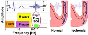 Research efforts during the 80-90s have shown that myocardial ischemia also induces changes to the depolarization phase and confirmed the use of HFQRS-RMS as a quantitative diagnostic measure of supply myocardial ischemia[5][6][7] and demand myocardial (stress-induced) ischemia.[8]