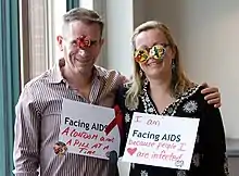 | The red ribbon is a symbol for solidarity with HIV-positive people and those living with AIDS.[3] | |