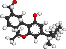 HU-210 is a synthetic cannabinoid that was first synthesized in 1988 from (1R,5S)-myrtenol[1] by a group led by Raphael Mechoulam at the Hebrew University.[2][3][4] HU-210 is 100 to 800 times more potent than natural THC from cannabis and has an extended duration of action.[5] HU-210 has a binding affinity of 0.061nM at CB1 and 0.52nM at CB2 in cloned human cannabinoid receptors[6] compared to Delta-9-THC of 40.7nM at CB1. [7] HU-210 is the (–)-1,1-dimethylheptyl analog of 11-hydroxy- Δ8- tetrahydrocannabinol; in some references it is called 1,1-dimethylheptyl- 11-hydroxytetrahydrocannabinol. The abbreviation "HU" stands for Hebrew University.