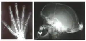 Hajdu–Cheney syndrome, also called acroosteolysis with osteoporosis and changes in skull and mandible, arthrodentoosteodysplasia and Cheney syndrome,[1] is an extremely rare autosomal dominant congenital disorder[2][3] of the connective tissue characterized by severe and excessive bone resorption leading to osteoporosis and a wide range of other possible symptoms. Mutations in the NOTCH2 gene, identified in 2011, cause HCS. HCS is so rare that only about 50 cases have been reported worldwide since the discovery of the syndrome in 1948[4]