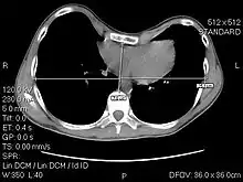 The Haller index, created in 1987 by J. Alex Haller, S. S. Kramer, and S. A. Lietman,[1] is a mathematical relationship that exists in a human chest section observed with a CT scan. It is defined as the ratio of the transverse diameter (the horizontal distance of the inside of the ribcage) and the anteroposterior diameter (the shortest distance between the vertebrae and sternum).[2]