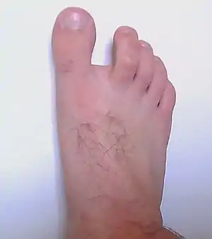 Hallux varus is a deformity of the great toe joint where the hallux (great toe) is deviated medially (towards the midline of the body) away from the first metatarsal bone. The hallux usually moves in the transverse plane. Unlike hallux valgus, also known as hallux abducto valgus or bunion, hallux varus is uncommon in the West but it is common in cultures where the population remains unshod.