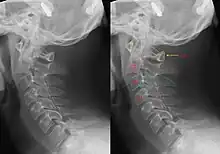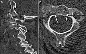 - Pratt, H.; Davies, E.; King, L. (2008). "Traumatic injuries of the c1/c2 complex: computed tomographic imaging appearances". Curr Probl Diagn Radiol. 37 (1): 26–38. doi:10.1067/j.cpradiol.2007.07.001. PMID 18054664.