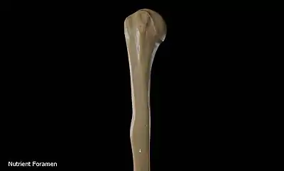 The nutrient foramen of the humerus is located in the anteromedial surface of the humerus. The nutrient arteries enter the humerus through this foramen.