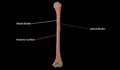 • The lateral border separates it from the groove which articulates with the margin of the head of the radius.
