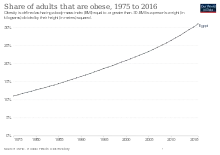 In 1996, Egypt had the highest average BMI in the world at 26.3.[26] In 1998, 1.6% of 2- to 6-year-olds, 4.9% of 6- to 10-year-olds, 14.7% of 10- to 14-year-olds, and 13.4% of 14- to 18-year-olds were obese. 45% of urban women and 20% of the rural population were obese.[27]