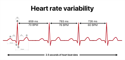 Heart rate variability (HRV) is the physiological phenomenon of variation in the time interval between heartbeats. It is measured by the variation in the beat-to-beat interval.
