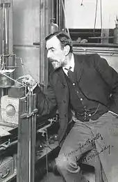 On March 26, 1895, Scottish chemist Sir William Ramsay isolated helium on Earth by treating the mineral cleveite (a variety of uraninite with at least 10% rare-earth elements) with mineral acids. Ramsay was looking for argon but, after separating nitrogen and oxygen from the gas, liberated by sulfuric acid, he noticed a bright yellow line that matched the D3 line observed in the spectrum of the Sun.[27][32][33][34] These samples were identified as helium by Lockyer and British physicist William Crookes.[35][36] It was independently isolated from cleveite, in the same year, by chemists, Per Teodor Cleve and Abraham Langlet, in Uppsala, Sweden, who collected enough of the gas to accurately determine its atomic weight.[37][38][25][39] Helium was also isolated by the American geochemist, William Francis Hillebrand, prior to Ramsay's discovery, when he noticed unusual spectral lines while testing a sample of the mineral uraninite. Hillebrand, however, attributed the lines to nitrogen.[40] His letter of congratulations to Ramsay offers an interesting case of discovery, and near-discovery, in science.[41]
