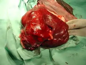 Hemangiosarcoma of the spleen in a dog, removed after surgery