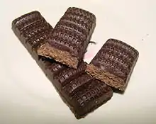 Hematogen (Russian: гематоге́н, gematogen; Latin: Haematogenum; Greek: Αιματογόνο, aimatogóno) is a nutrition bar which is notable in that one of its main ingredients is black food albumin, a technical term for cow's blood.[1] Other ingredients may vary, but they usually contain sugar, condensed milk and vanillin.